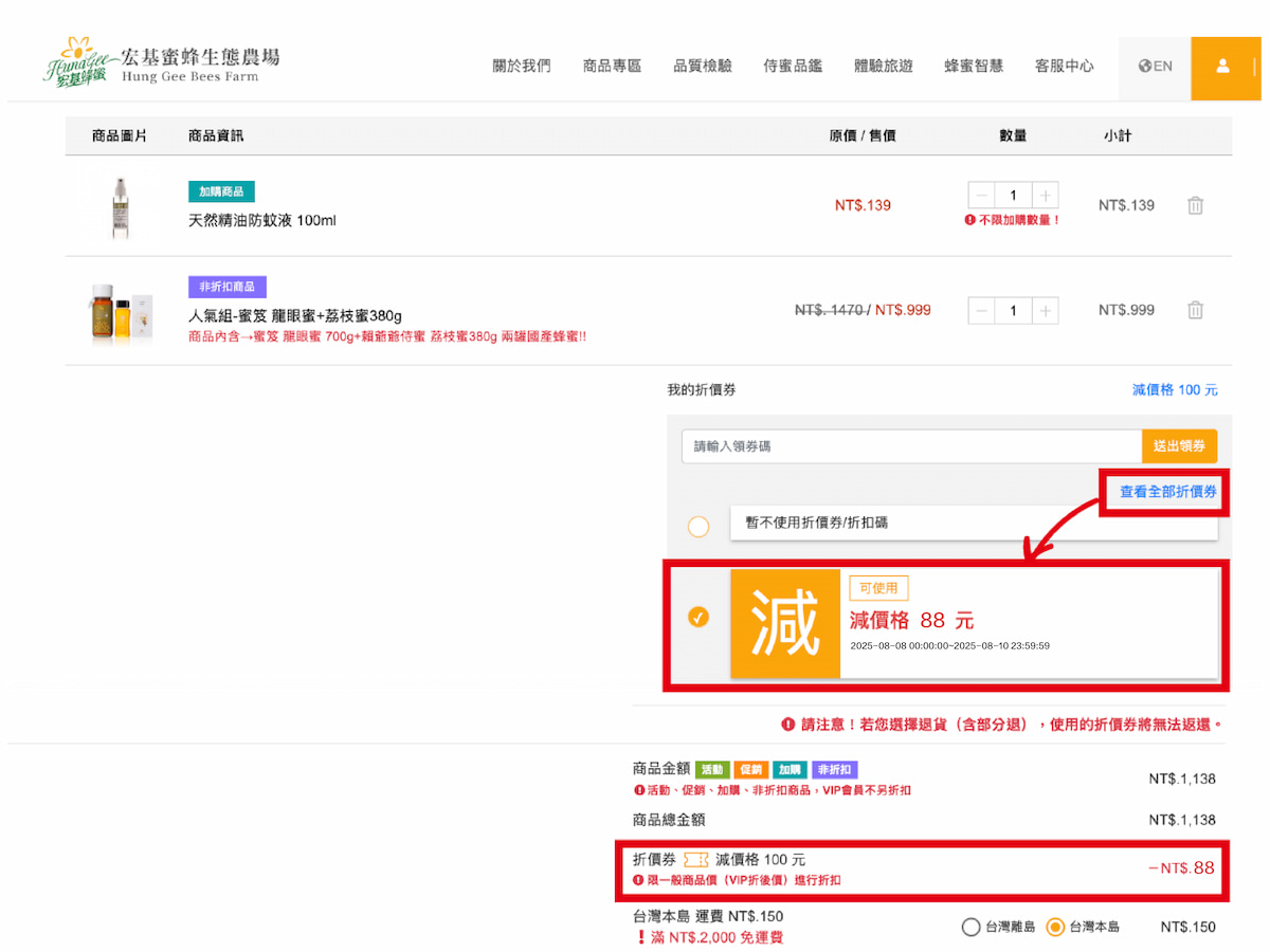 ※本活動僅適用於宏基蜜蜂生態農場官方網站。