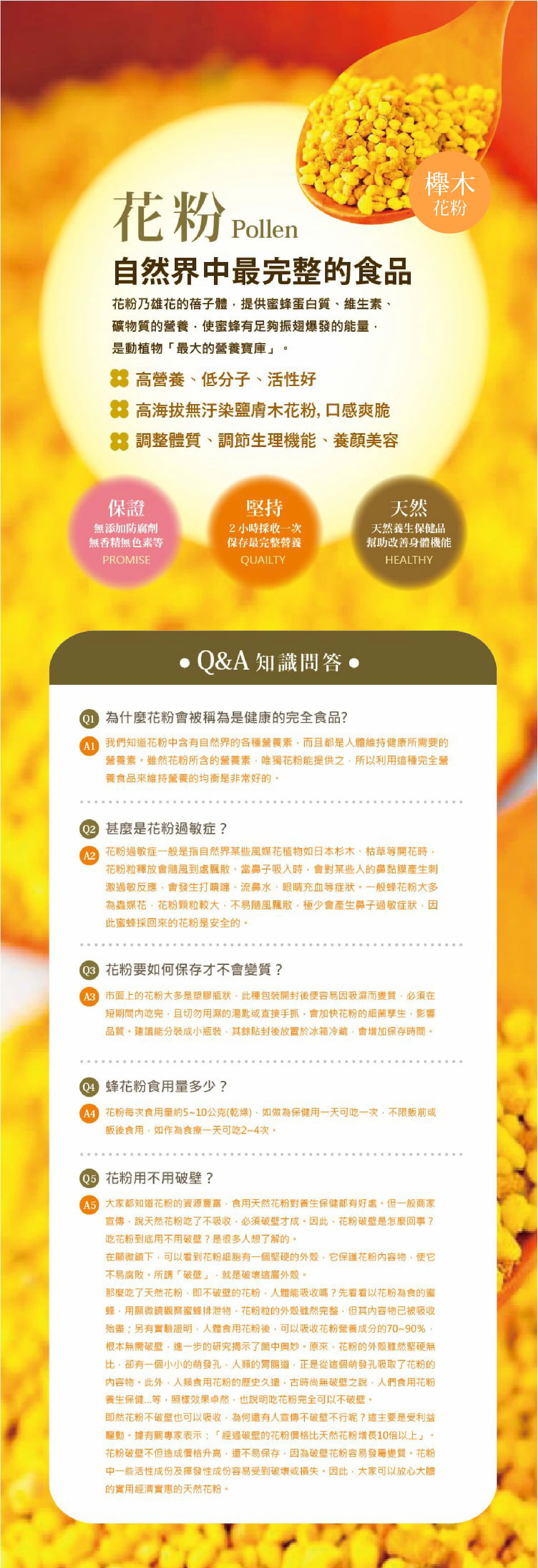 採自高海拔無汙染櫸木花粉,微微酸滋味,帶有濃郁花香味!
